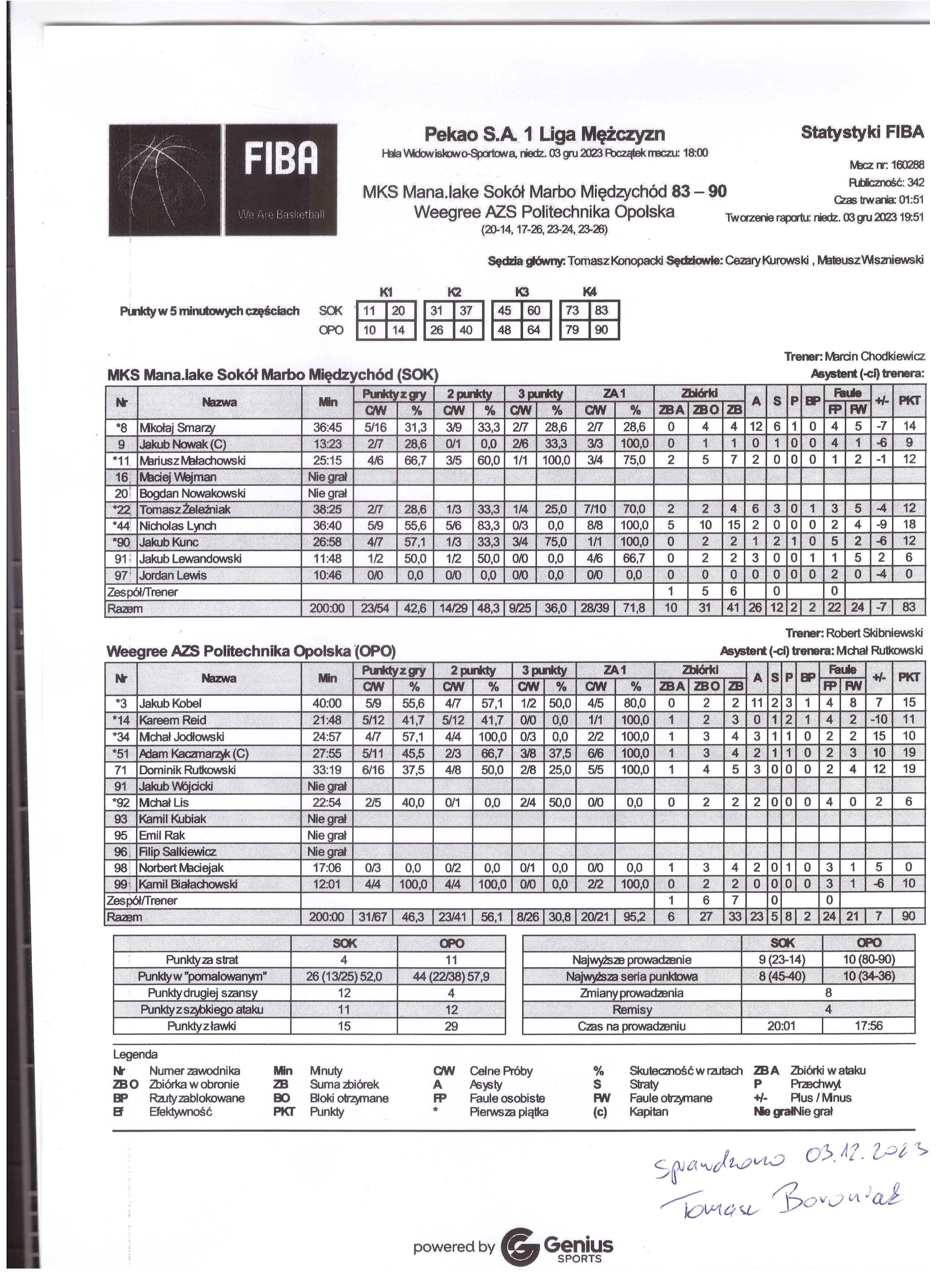 | 91 | Jakub Lewandowski | 6 | 11:48 | 1/2 | 50.0 |   |   | 1/2 | 50.0 | 4/6 | 66.7 |   | 2 | 2 | 3 | 1 | 5 |   |   | 1 |   | 9 | 2 | |
