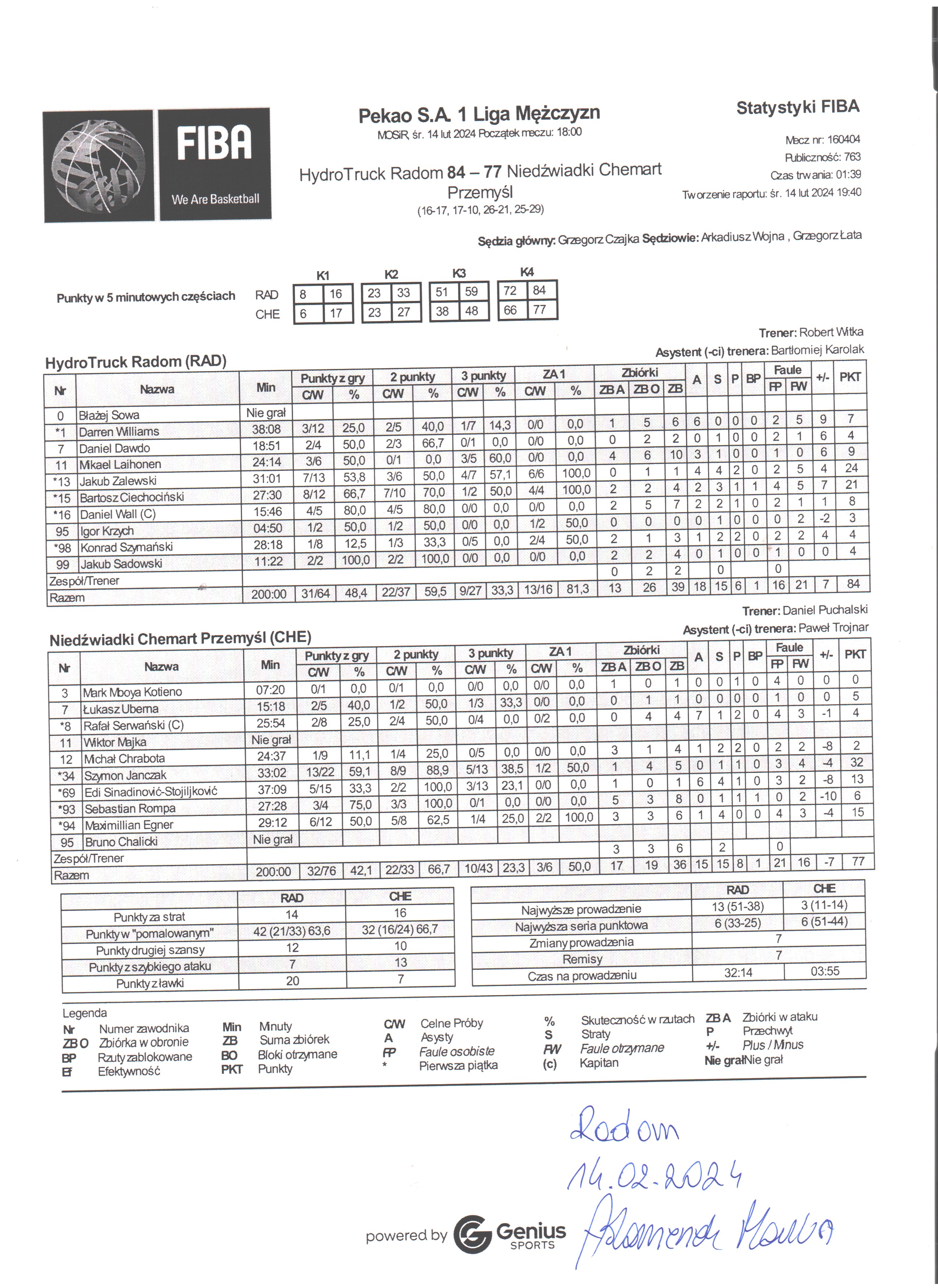 | 09:59:00 | 34, S. Janczak, wygrany rzut sędziowski | |||