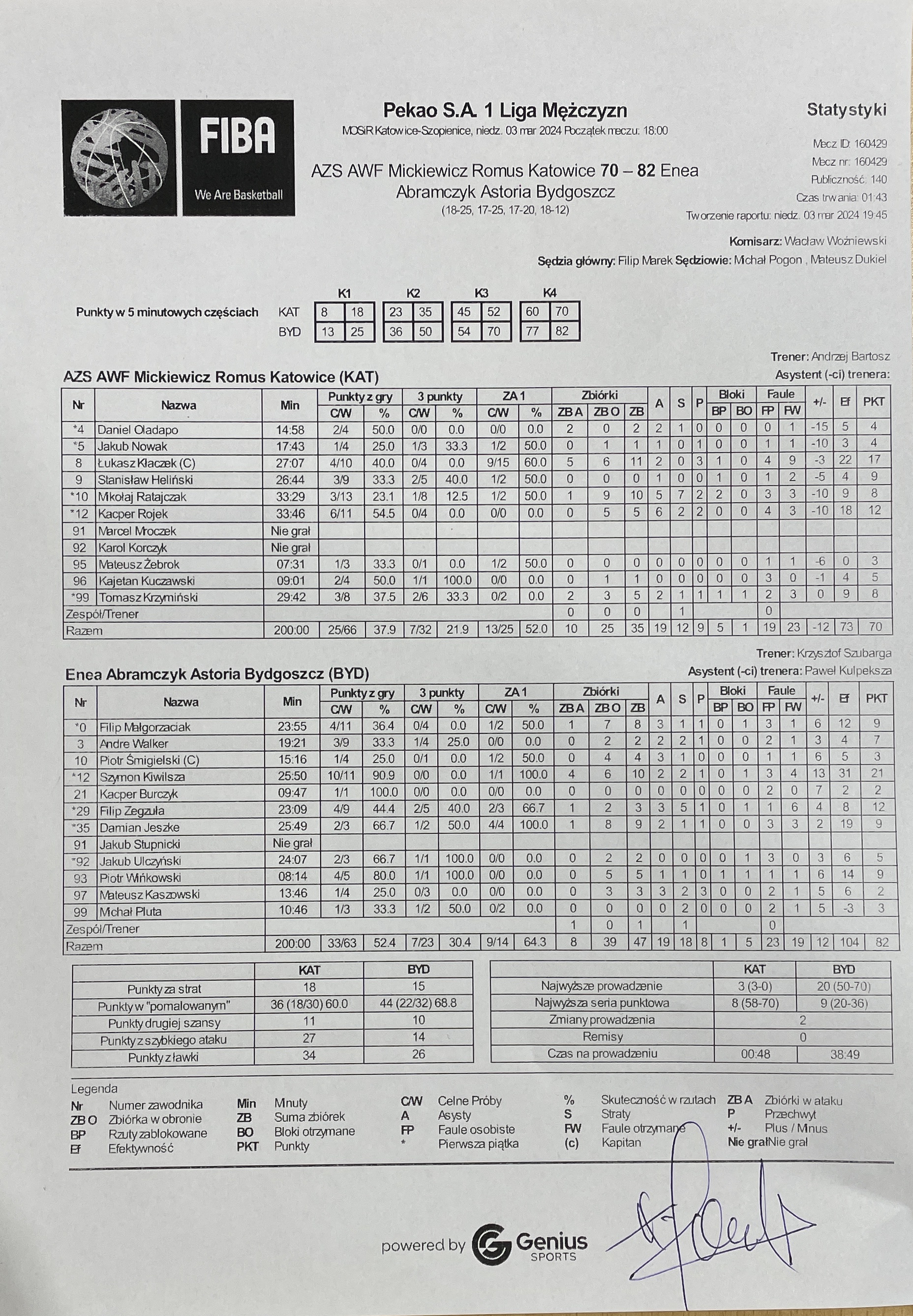 | Mikołaj Ratajczak (32:46) | czas gry | Damian Jeszke (28:25) |
