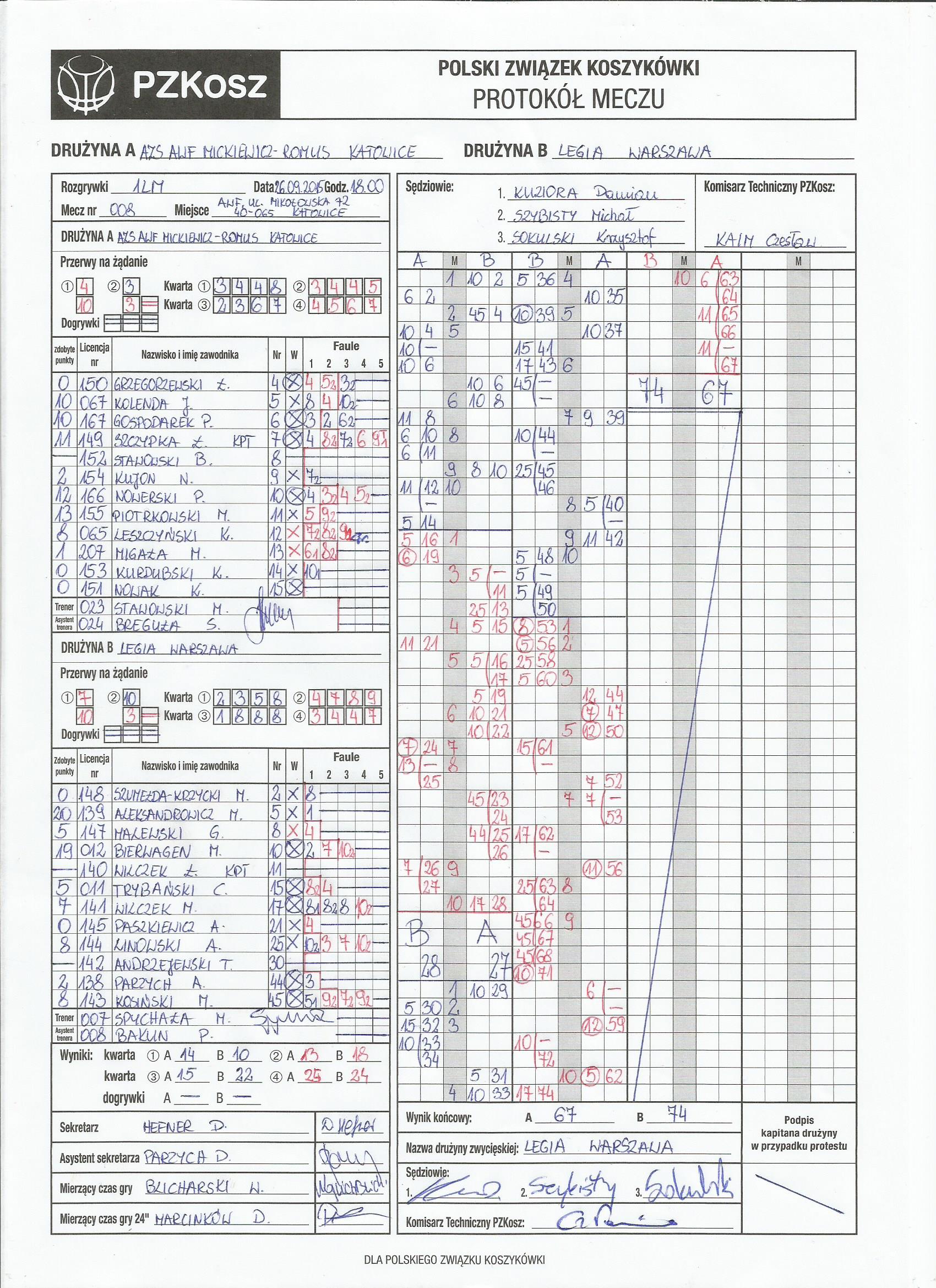 Sędziowie: Damian Kuziora, Michał Szybisty, Krzysztof Sokulski | Komisarz: Czesław Kaim